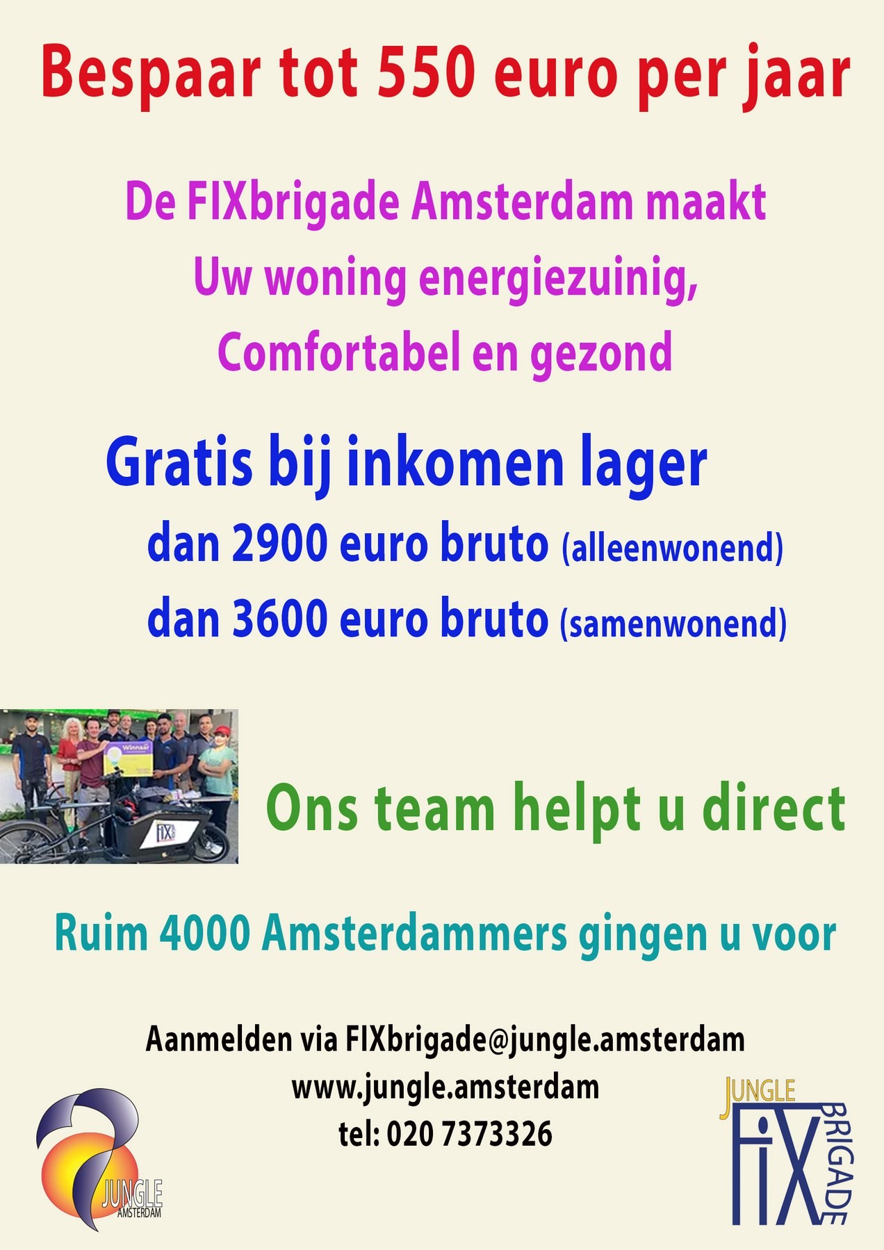 Voor meer informatie of het maken van een afspraak kunt u contact met ons opnemen: fixbrigade@jungle.amsterdam, tel: 0207373326