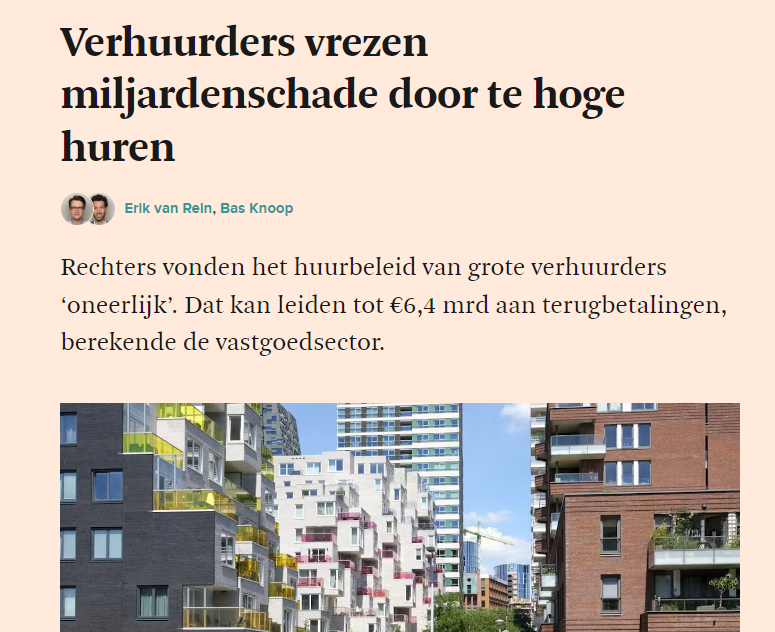 Rechters hebben geoordeeld dat verhuurders van vrije sector woningen jarenlang te hoge huren hebben berekend. De vastgoedsector heeft berekend dat dit kan leiden tot €6,4 miljard aan terugbetalingen.